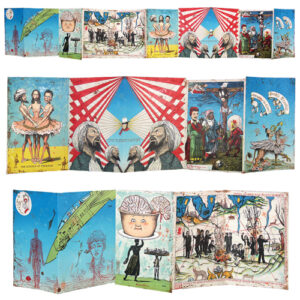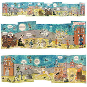 Enrique Chagoya makes paintings and prints about the changing nature of culture. “My artwork is a conceptual fusion of opposite cultural realities that I have experienced in my lifetime. I integrate diverse elements: from pre-Columbian mythology, Western religious iconography and American popular culture.”