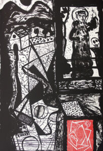 Italo Scanga was a painter, sculptor, and printmaker. After a childhood spent in Italy, Scanga matured as an artist in his adopted home, the United States. He was a prolific artist who worked in many mediums, combining found and altered objects with sculpted or painted elements. Religion, culture, and history were major themes in the monotypes and lithographs that Scanga produced at Shark’s Ink. He used images of saints, fruits and vegetables, vases, and landscapes to evoke a sensuous, poetic connection to everyday life and its social meaning.