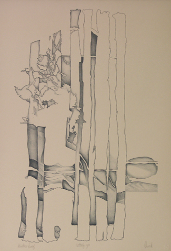 ArtistDarrick Brown Date1979 MediumLITHOGRAPH EditionWP Dimensions22 1/4 x 15 inches / 56.52 x 38.1 cm PaperGrey Rives BFK Inventory NumberDB79-02 PublisherArtist Printer(s)Bud Shark DescriptionSIGNED: workshop Proof