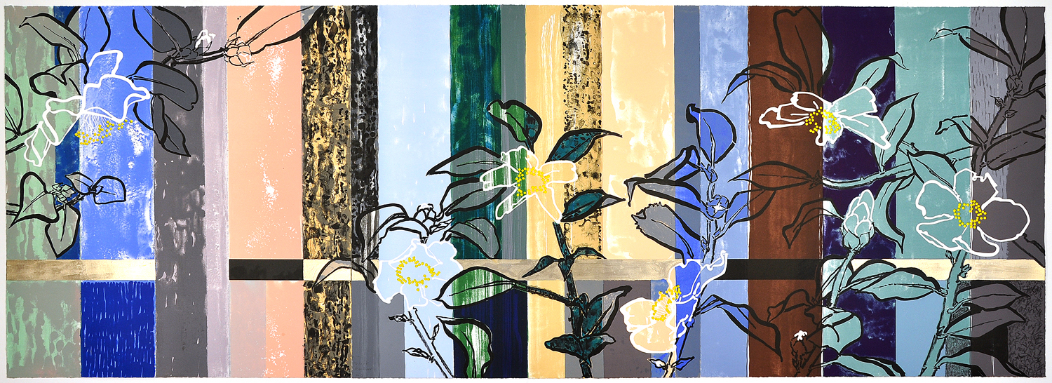 - MediumCOLOR LITHOGRAPH TRIPTYCH WITH GOLD LEAF
