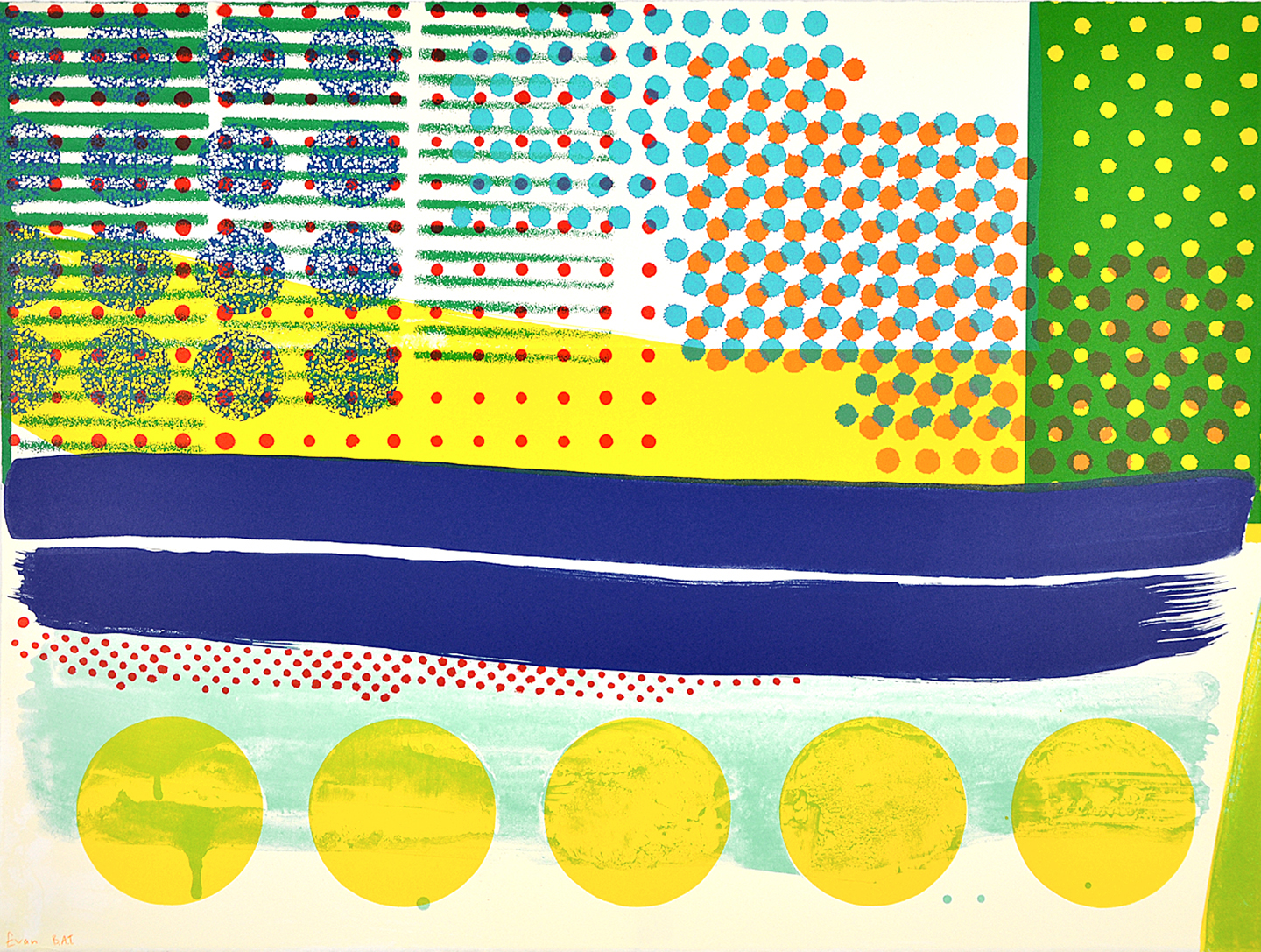 ArtistEvan Colbert Date2019 MediumCOLOR LITHOGRAPH EditionBAT Dimensions22 1/4 x 30 inches / 56.52 x 76.2 cm PaperWhite Rives BFK Inventory NumberEColbert19-02 PublisherShark's Ink. Printer(s)Bud Shark DescriptionSIGNED: B.A.T.