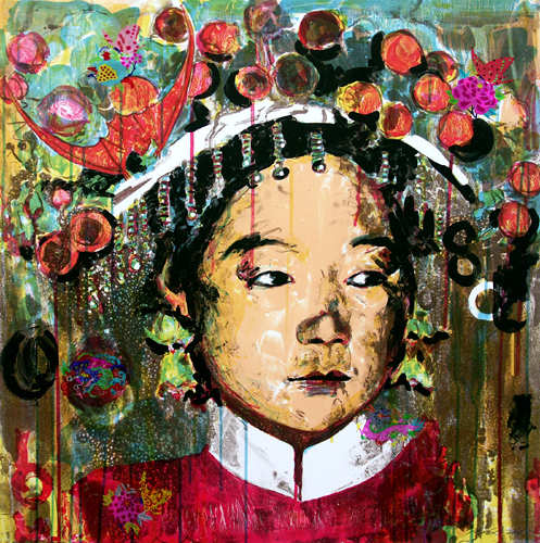 ArtistHung Liu Date2001 MediumCOLOR LITHOGRAPH WITH COLLAGE EditionBAT Dimensions30 x 30 inches / 76.2 x 76.2 cm PaperWhite Rives BFK Inventory NumberHL01-01 PublisherShark's Ink. Printer(s)Bud Shark DescriptionSIGNED: B.A.T. - FRAMED