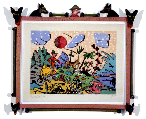 ArtistRoy De Forest Date1999 MediumCOLOR WOODCUT AND PAINTED FRAME EditionPP Dimensions22 x 28 inches / 55.88 x 71.12 cm PaperWhite Thai Mulberry Inventory NumberRD99-01 PublisherShark's Ink. Printer(s)Bud Shark DescriptionSIGNED